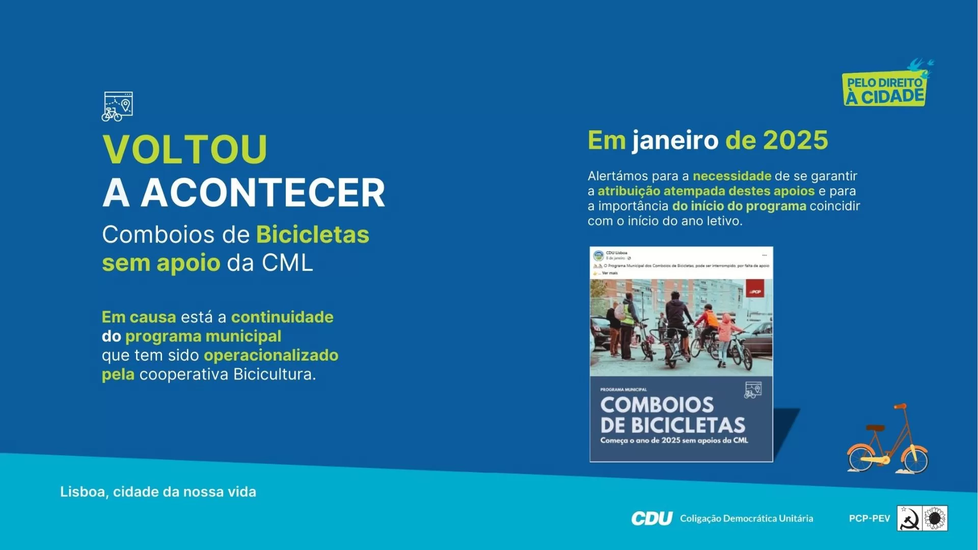 A CDU já pediu esclarecimentos sobre a continuidade do Programa Municipal Comboio de Bicicletas.