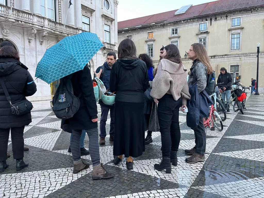 João Ferreira, Sofia Lisboa e Ana Jara, juntaram-se aos manifestantes que se concentraram na praça do município para manifestar solidariedade com estes e ouvir as suas preocupações e descontentamento perante a apreensão das bicicletas no espaço público pela polícia municipal e reivindicando por mais investimento nos meios de mobilidade suave, em particular nas bicicletas.