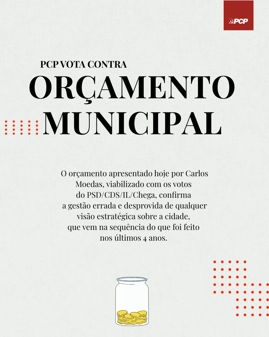 O vereador do PCP votou contra os orçamentos e planos de atividades de todas as empresas municipais.