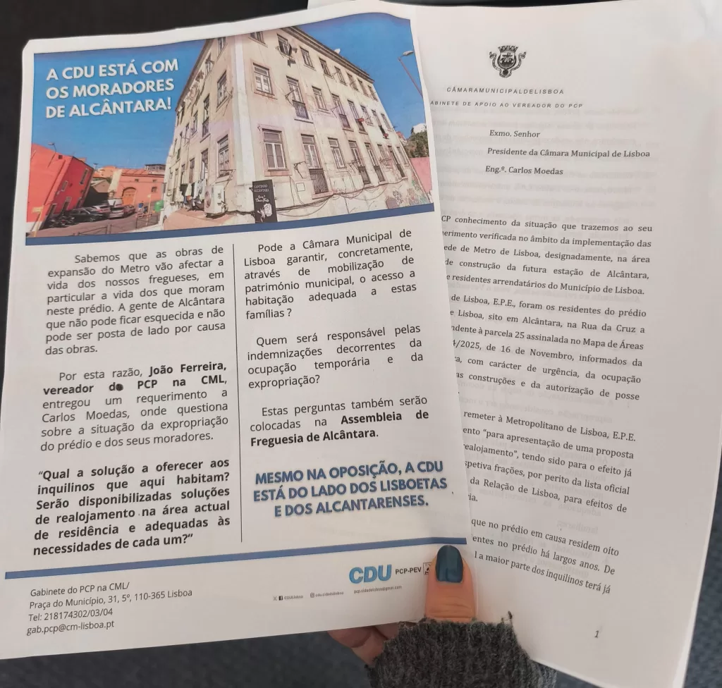 A organização local do PCP já esteve no prédio da Rua da Cruz a Alcântara, prestando solidariedade e dando conta do requerimento apresentado na CML.