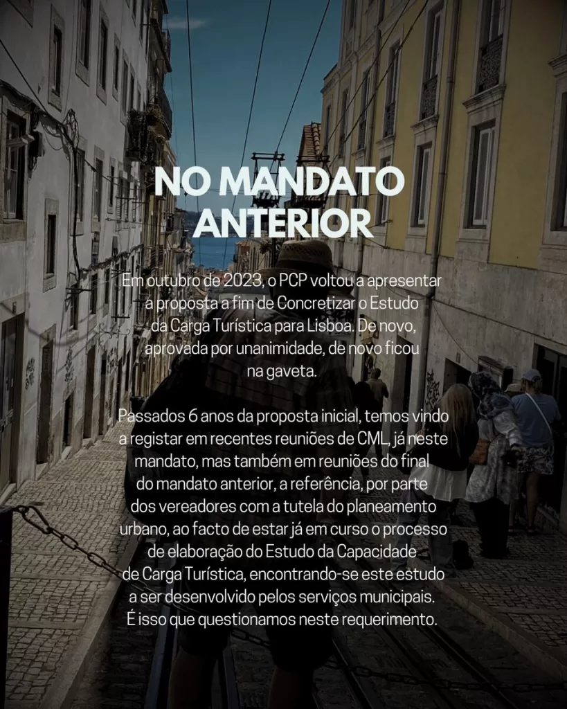 No mandato anterior, em outubro de 2023, o PCP voltou a apresentar a proposta a fim de Concretizar o Estudo da Carga Turística para Lisboa. De novo, aprovada por unanimidade, de novo ficou na gaveta.
