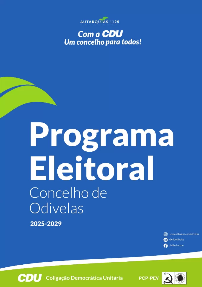Candidatos CDU - Autárquicas 25 Odivelas CDU Odivelas– Programa Eleitoral Autárquicas 2025 odivelas24 de Setembro de 2025 Autárquicas 2025 Descarrega o Programa Eleitoral da candidatura da CDU ao Concelho de Odivelas. Programa Eleitoral CDU Concelho Odivelas 2025-2029Descarregar PARTILHAR Facebook Twitter Email Whatsapp Messenger