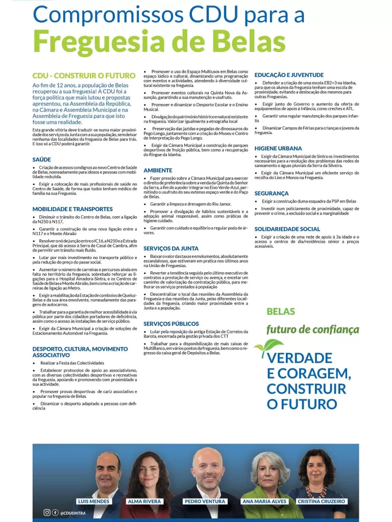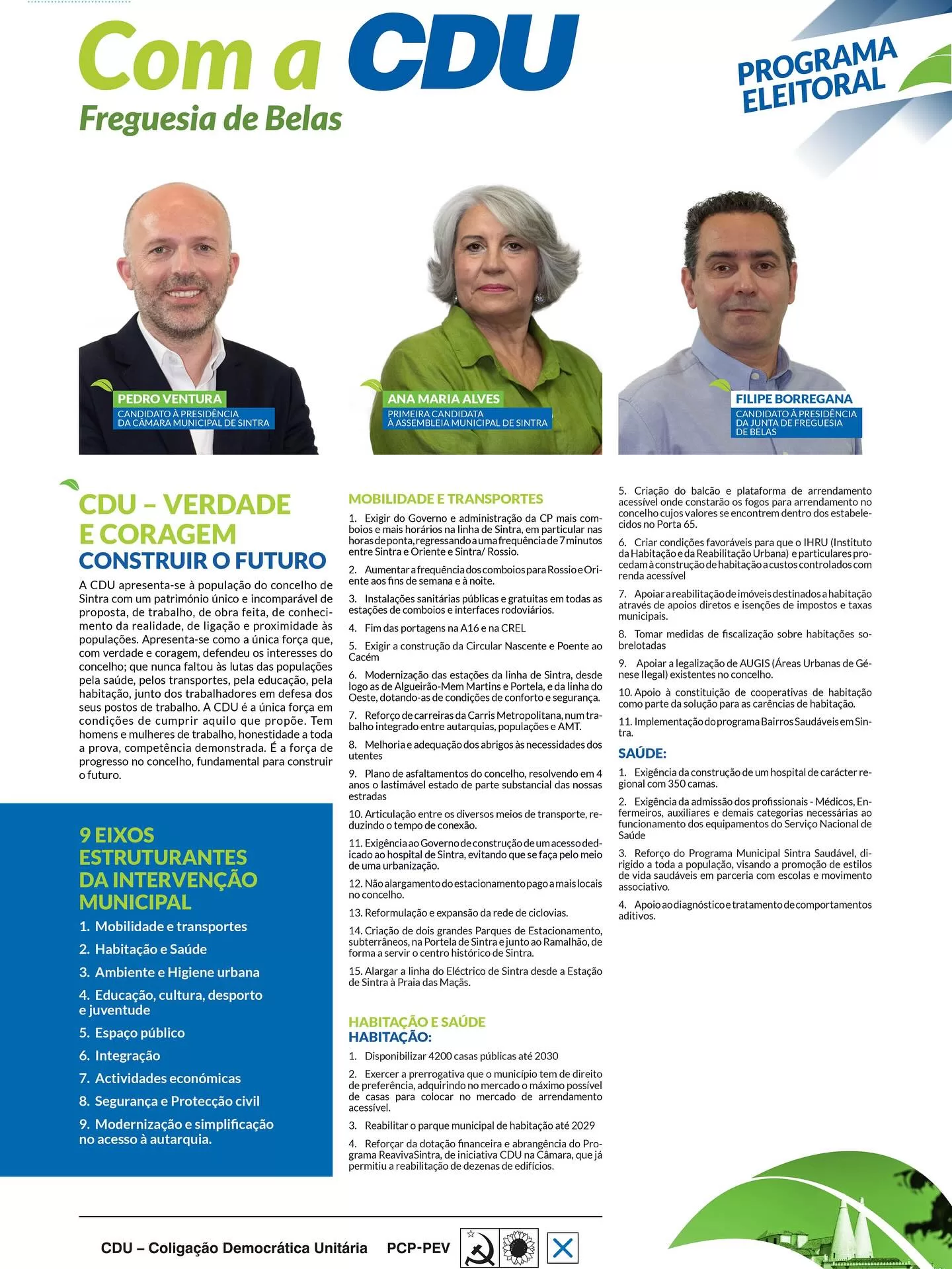 Queluz e Belas Sintra Programa Eleitoral. Belas. Joana Marques4 de Outubro de 2025 Autárquicas 2025CDU Verdade e Coragem para Construir o Futuro. PARTILHAR Facebook Twitter Email Whatsapp Messenger