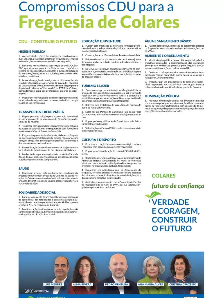 Colares Sintra Programa Eleitoral. Colares. Joana Marques5 de Outubro de 2025 Autárquicas 2025CDU Verdade e Coragem para Construir o Futuro. PARTILHAR Facebook Twitter Email Whatsapp Messenger