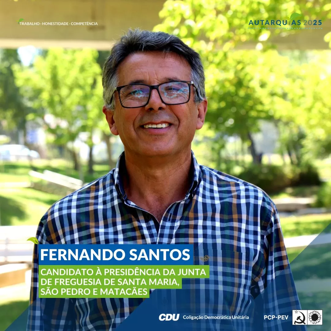 A CDU concorre uma vez mais à freguesia de S. Maria, S. Pedro e Matacães com uma equipa de homens e mulheres disponíveis para trabalhar por uma freguesia melhor para os que cá vivem e para os que nos visitam, para ajudar a integrar quem escolheu a nossa freguesia para viver e trabalhar, revendicar por serviços essenciais mas sobretudo, enquanto eleitos, para estar ao lado das populações, dos seus anseios e preocupações, para as ouvir e com elas procurar as melhores soluções. Foi isso que fizemos neste último mandato na Junta de Freguesia e na Assembleia de Freguesia e estamos empenhados em superar os desafios do futuro. Temos massa crítica, imaginação e trabalho que fala si, por isso, no próximo mandato defendemos os seguintes pontos.