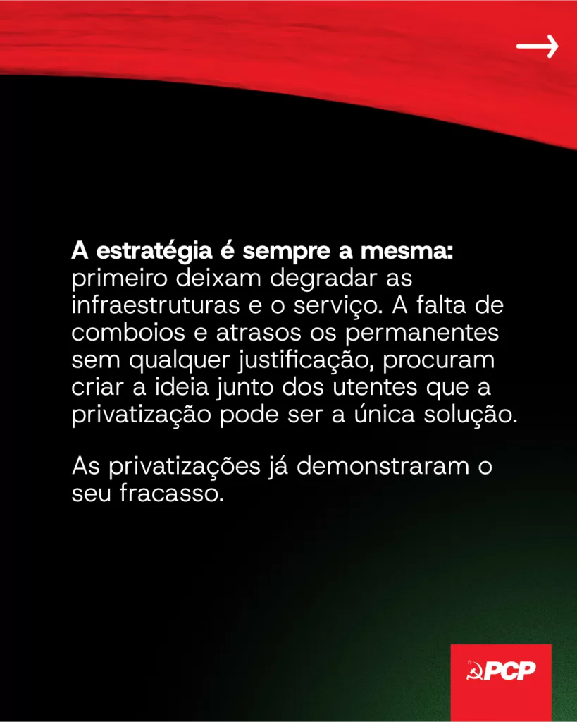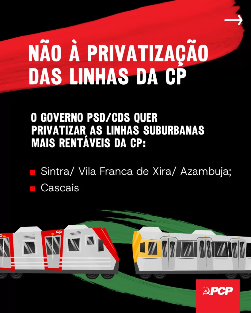 1 2 DORL PCP inicia uma campanha de contacto e denúncia contra a privatização de linhas suburbanas no distrito de Lisboa Fernando Henriques4 de Março de 2026 CPPCPprivatizações PARTILHAR Facebook Twitter Email Whatsapp Messenger