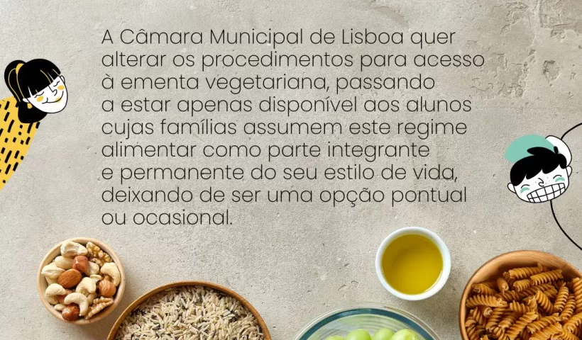 A Câmara Municipal de Lisboa, quer alterar os procedimentos para acesso à ementa vegetariana, passando a estar apenas disponível aos alunos cujas famílias assumem este…